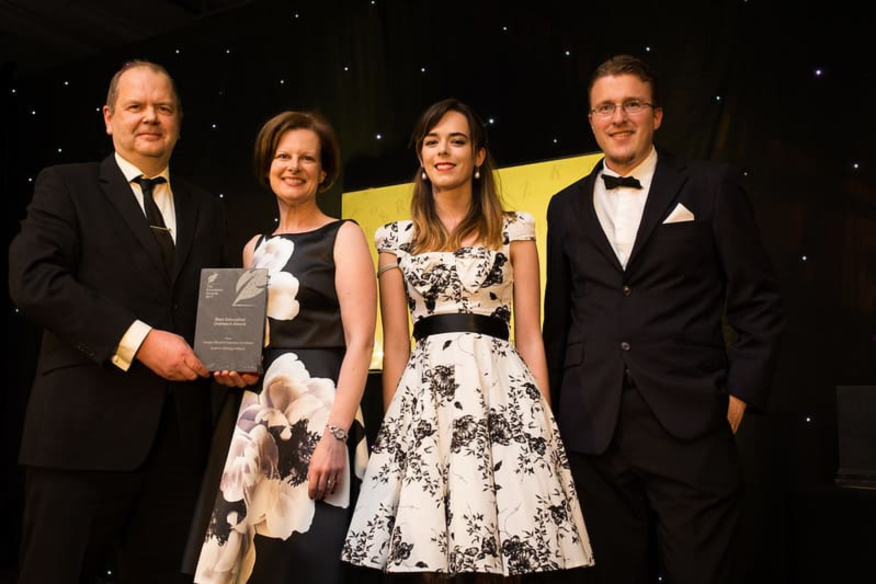 Michael McLoughlin, CEO, Amárach Research presents the Best Use of Educational Technology / ICT Initiative of the Year award to Dr. David Barr & Dr. Jessica Bates, School of Education, Ulster University.