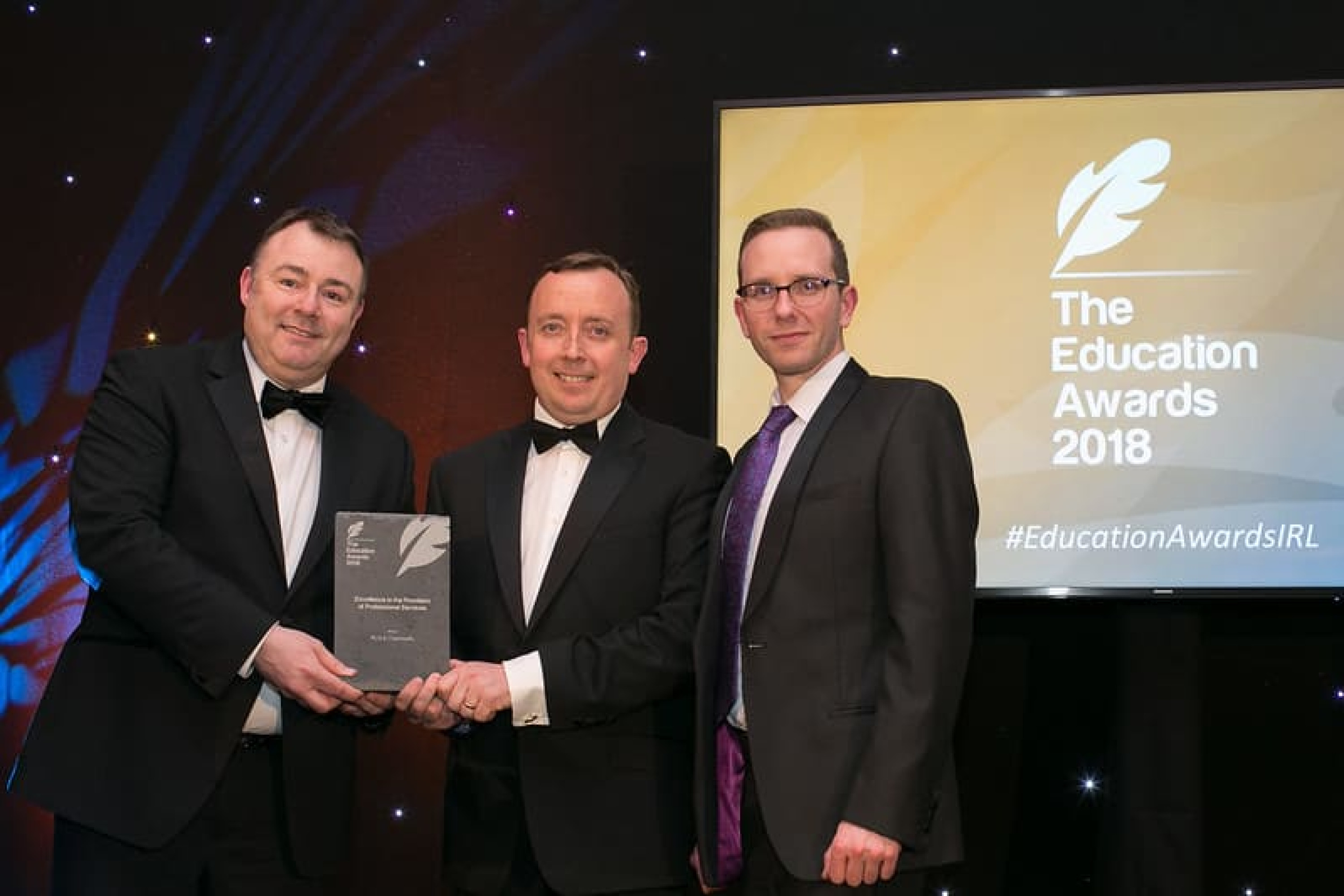 Robert Farrell, Digital Marketing Course Director, Digital Marketing Academy of Ireland presents Excellence in the Provision of Professional Services Award to Bryan Sheils & Ken Gormley, RCSI.