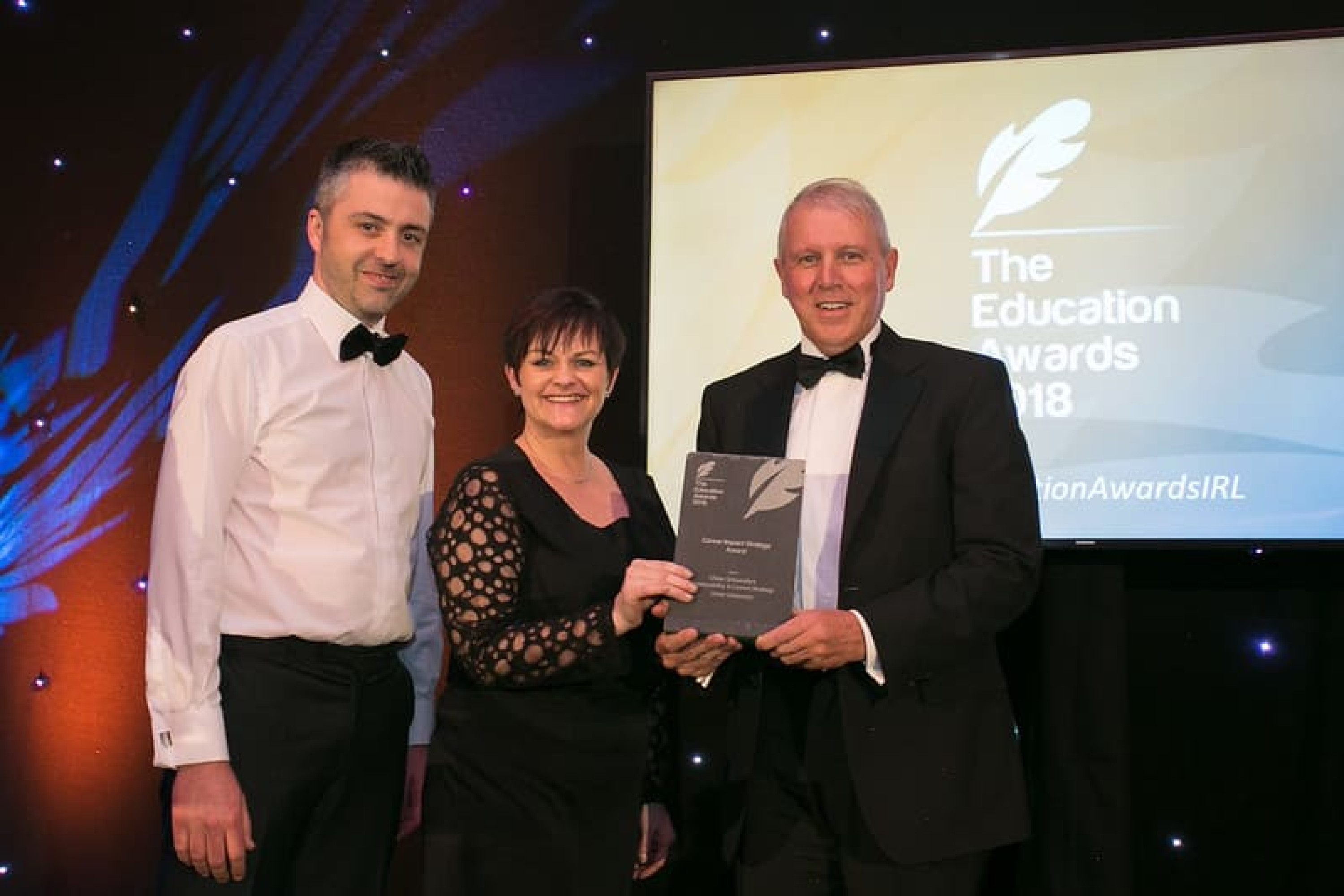 Robert Farrell, Digital Marketing Course Director, Digital Marketing Academy of Ireland presents Best Use of Educational Technology / ICT Initiative of the Year Award to Ulster University Team.