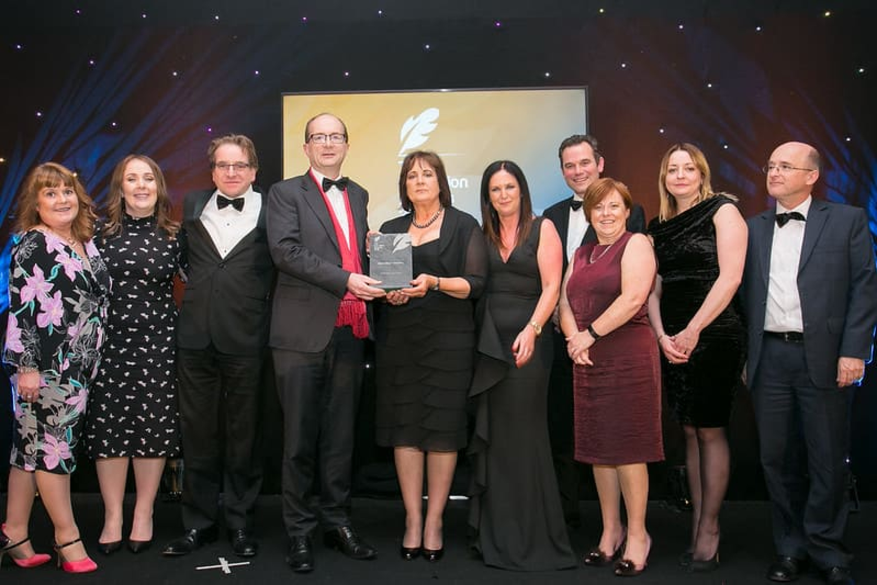 Dr. Teresa Hurley Former Head of School of Management, DIT presents the Best Further Education Provider Award to CMIT Team.
