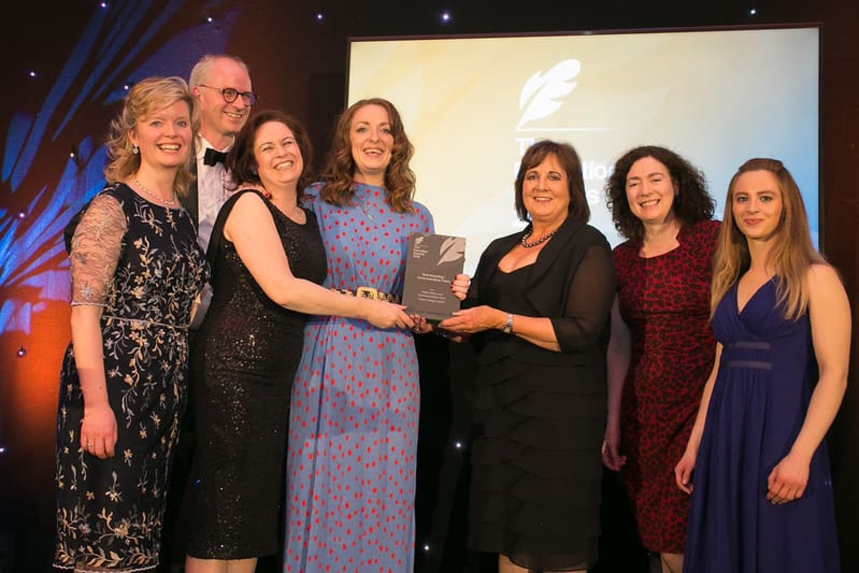 Jane O'Keefe, JC & Director of Supply Chain, NMCI/CIT presents Best Marketing / Communications Team Award to Trinity College Dublin Team.