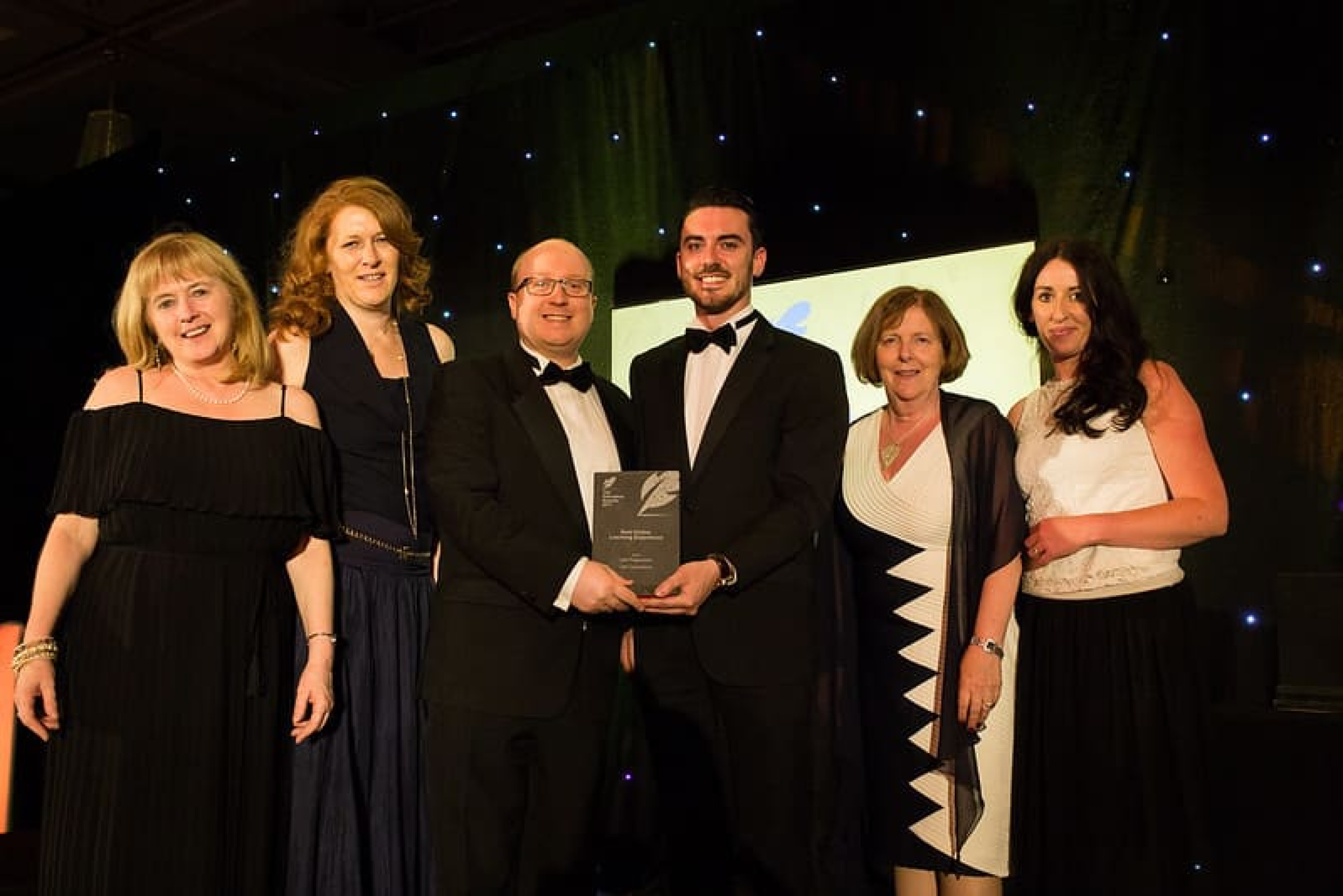 Michael McLoughlin, CEO, Amárach Research presents the Best Marketing / Communications Team award to the International Marketing Team - Trinity College Dublin team.