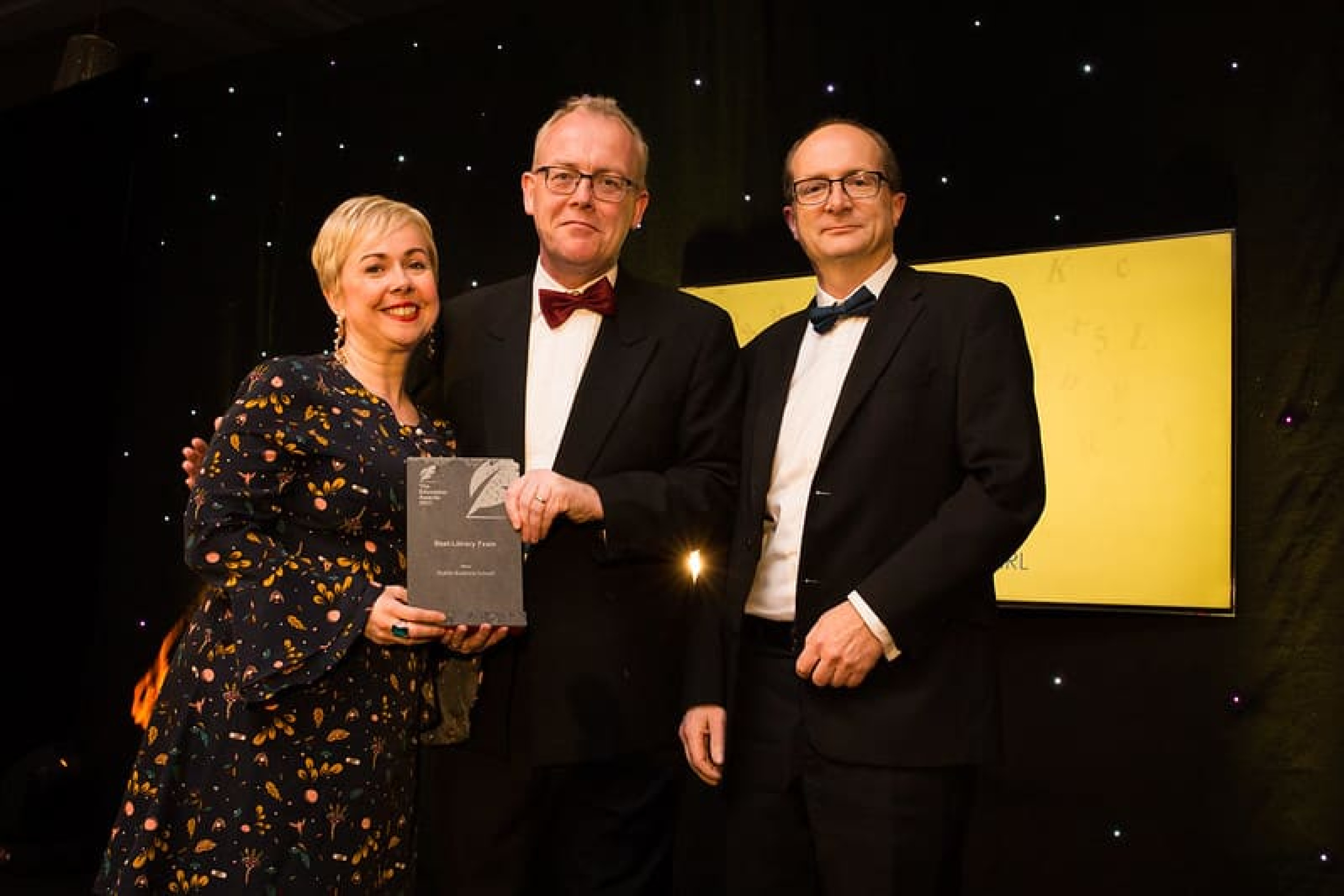 Michael McLoughlin, CEO, Amárach Research presents the Best Library Team award to Marie O’Neill and Andrew Conlan, Dublin Business School.