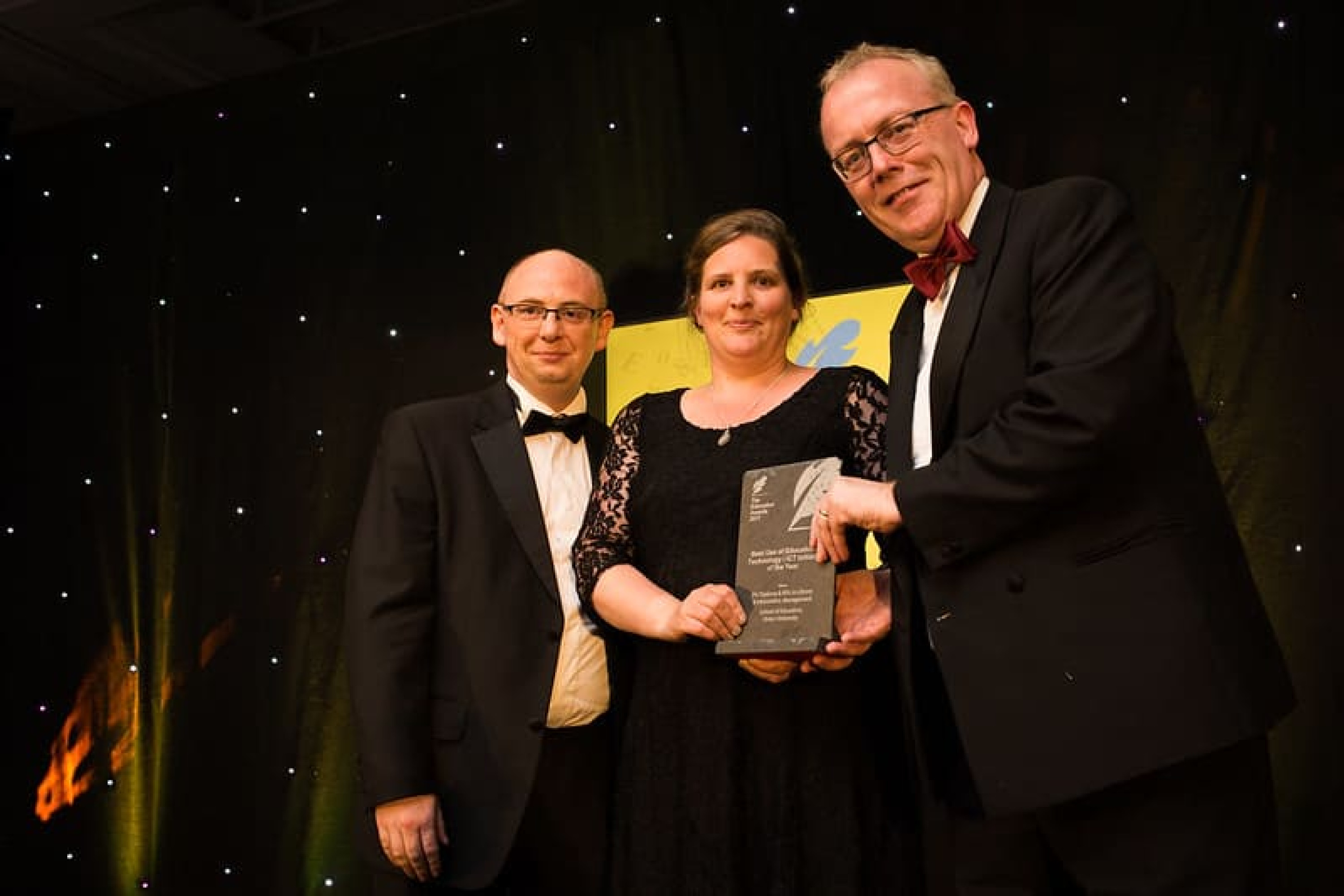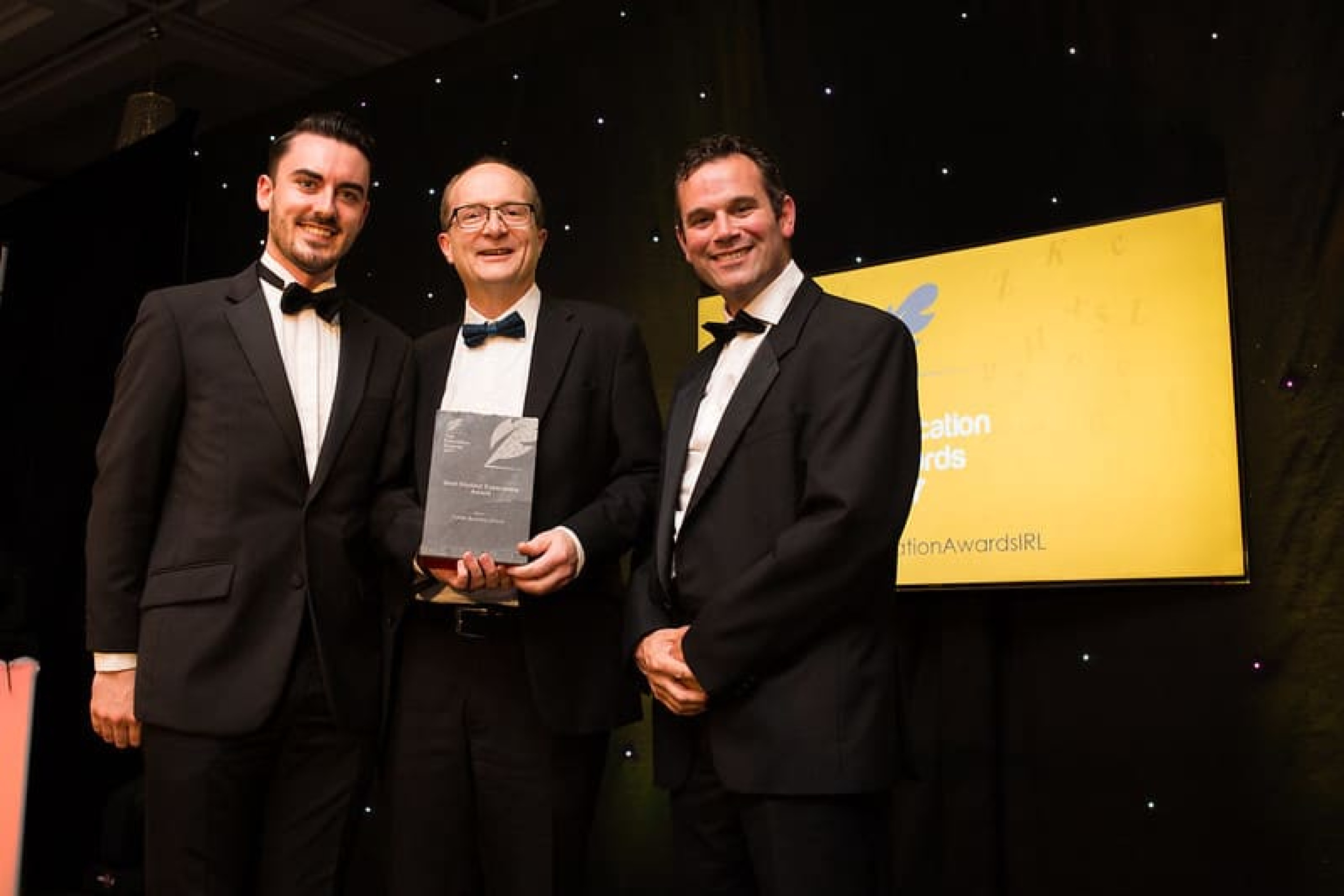 Michael McLoughlin, CEO, Amárach Research presents the Best Use of Educational Technology / ICT Initiative of the Year award to Dr. David Barr & Dr. Jessica Bates, School of Education, Ulster University.